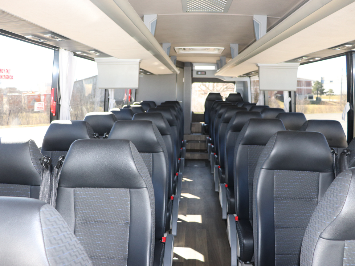 The GO Riteway minicoach is a great option for special events, moving a corporate group, or providing an employee shuttle. These 33-passenger minicoaches are perfect for smaller groups. They feature a walk-in entrance and center aisle with 2-across seating in plush, high-back, front-facing seats.